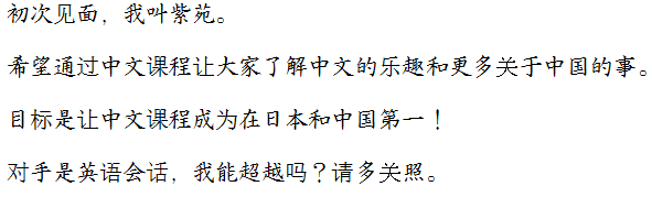 中国語レッスンを通して、中国語の面白さや中国の事を知って頂ければ嬉しいです。