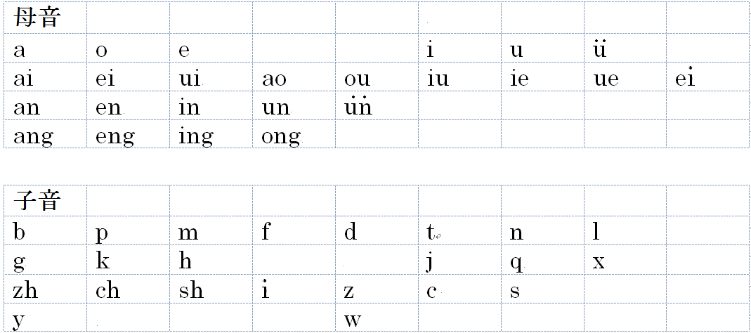 ピンインとは日本語でいう50音の事です。発音は母音と子音の組み合わせで成り立っています。